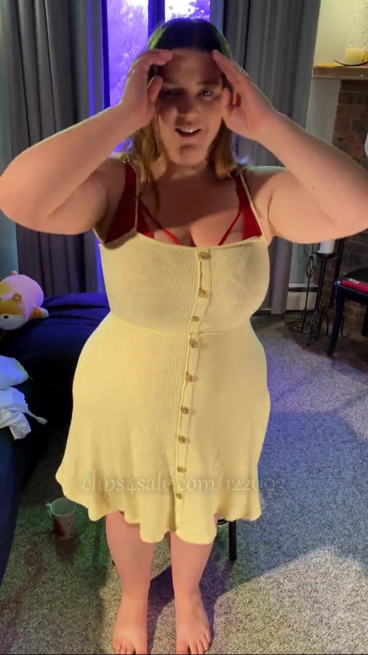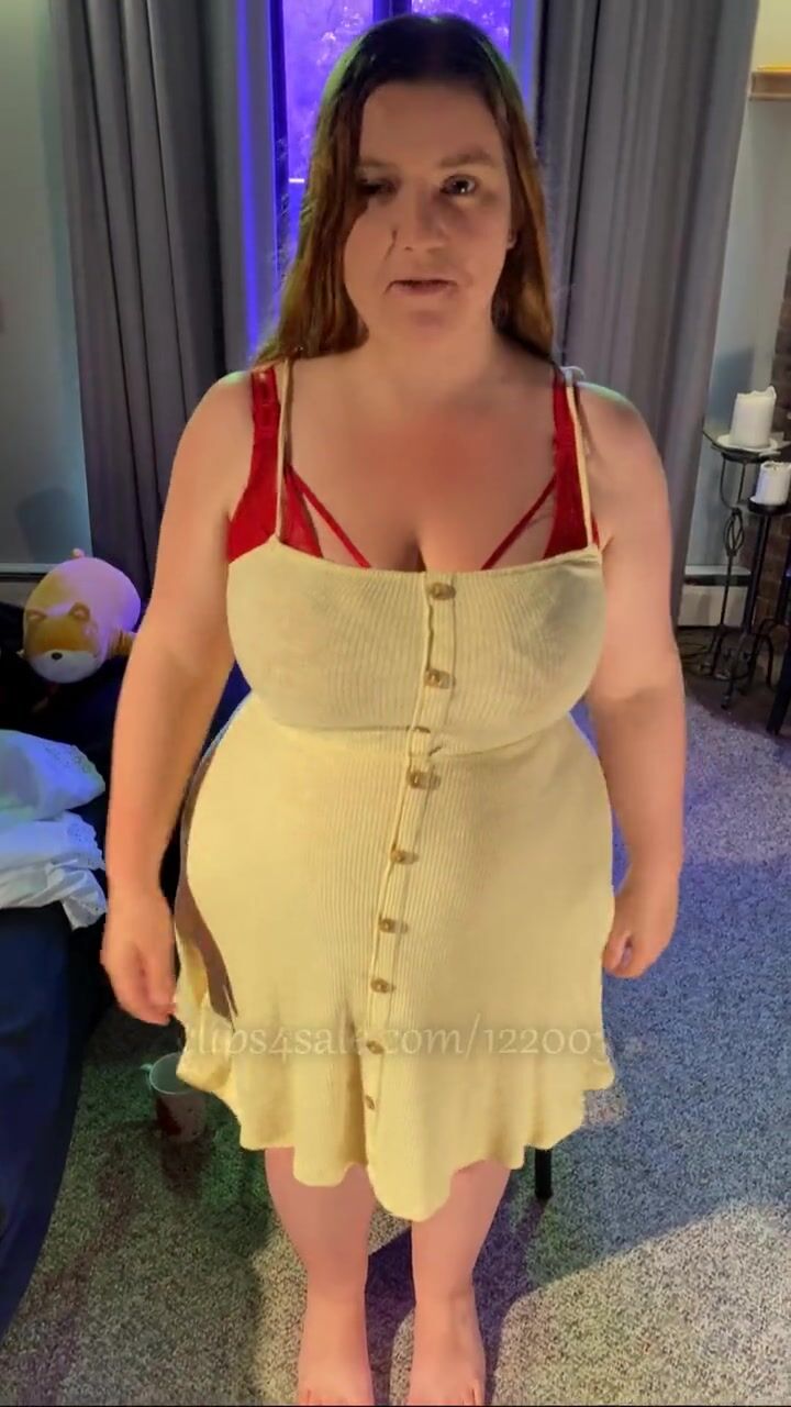 WEVIBE EDGING ORGASMS WITH MINIDRESS STRIPTEASE - BBW 38G TORPEDO TITS AND G-STRING - PLUS SIZE MODELING FETISH