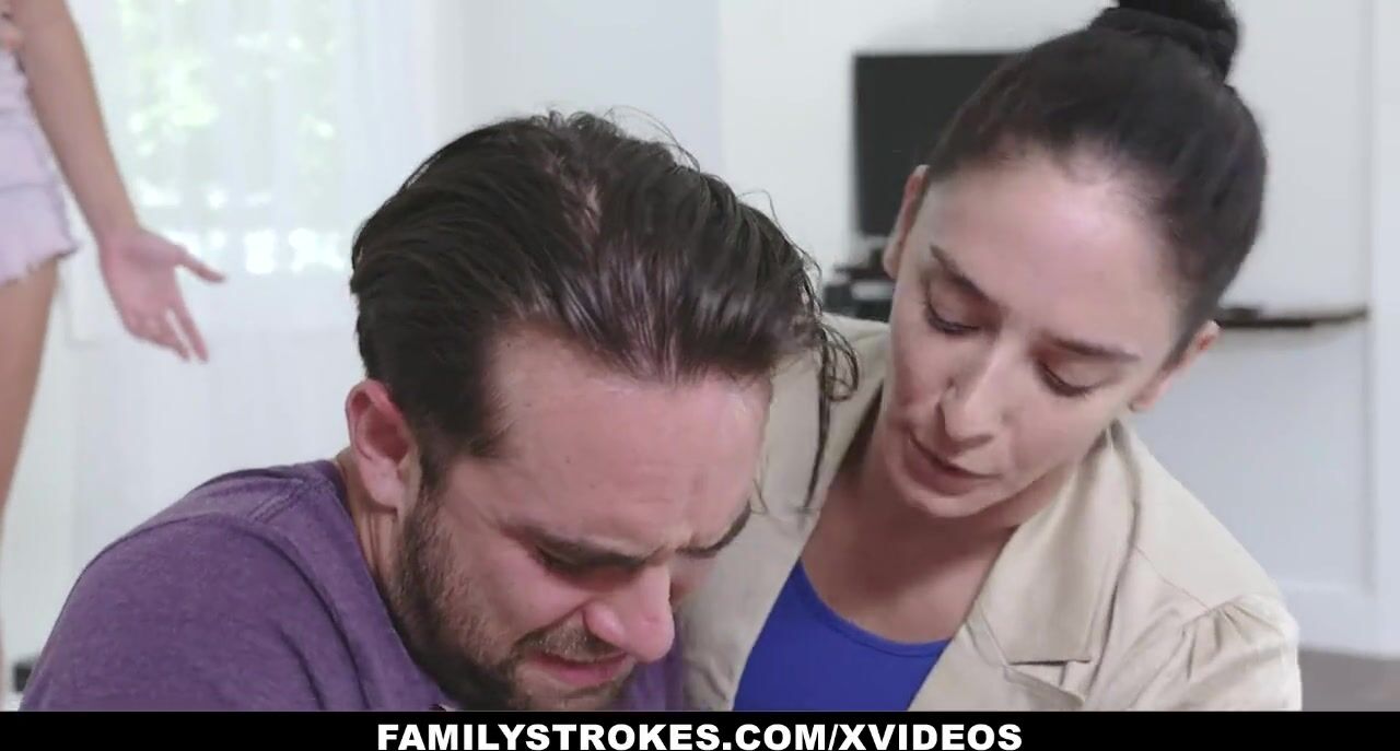 . Family Strokes - Innocent Teen Slobbers On Stepbros Big Cock As She Sucks it While Stepmom Watch