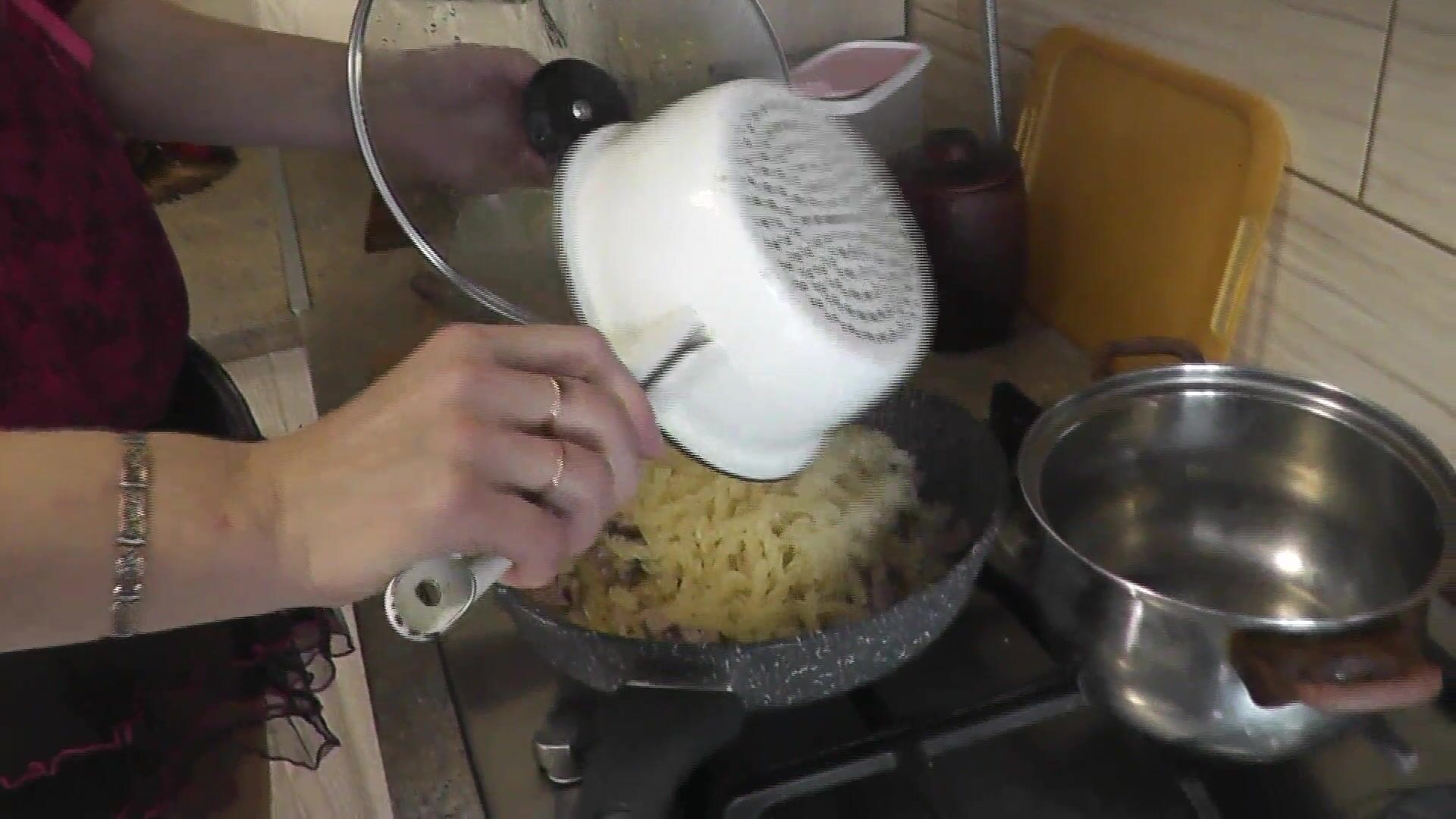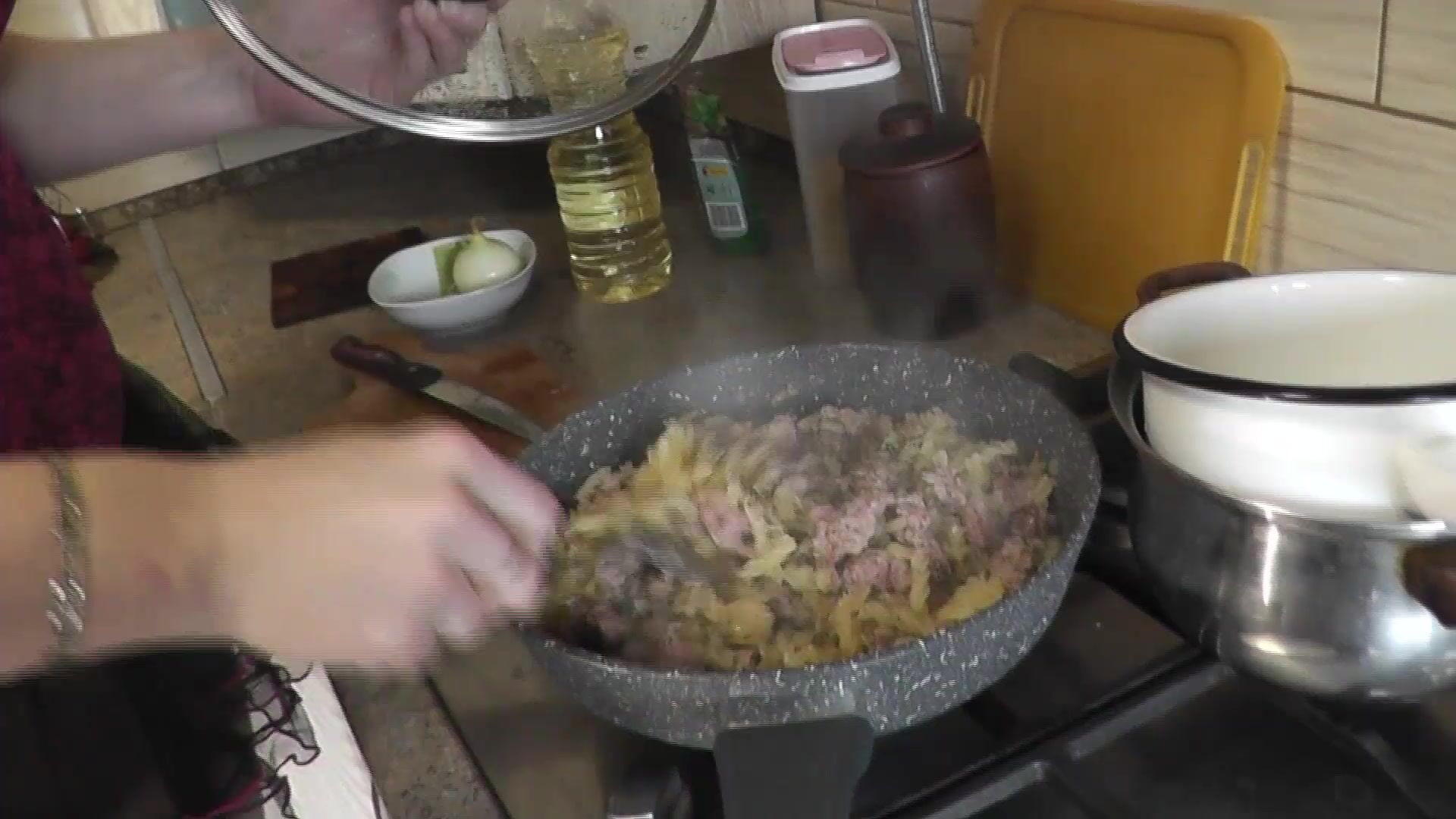 MOMMY MILF WITHOUT PANTIES IN STOCKINGS HIGH HEELS CONTINUES NUDE COOKING, SHOWS PUSSY, BOOBS, NIPPLES, BUTT AND COOKS PASTA NAUTICALLY IN KITCHEN. ASS PUSSY TITS LEGS MOM MILF