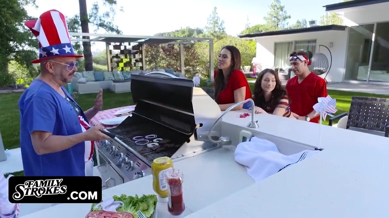 . Family Strokes - Perv Step Family Sneaky Fuck In The Backyard While Preparing For 4th Of July