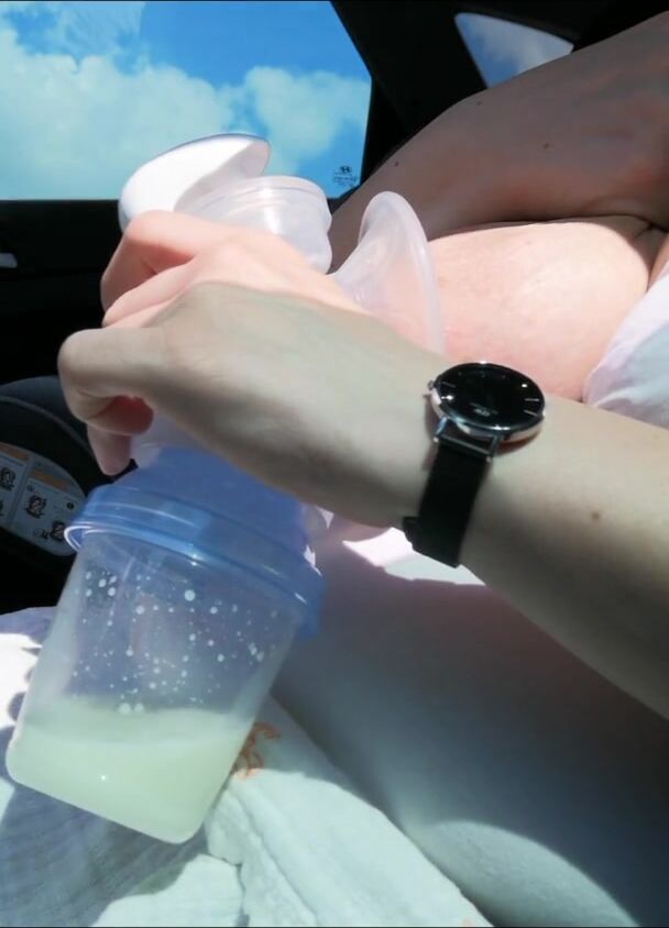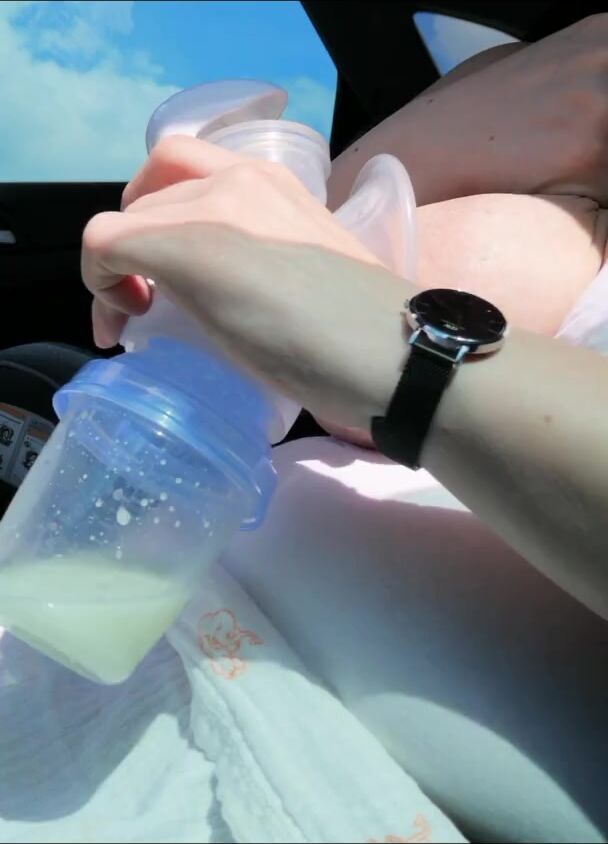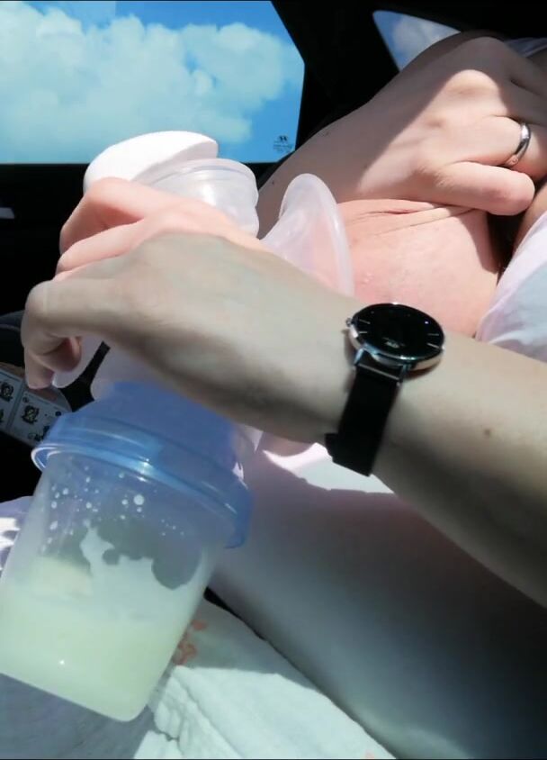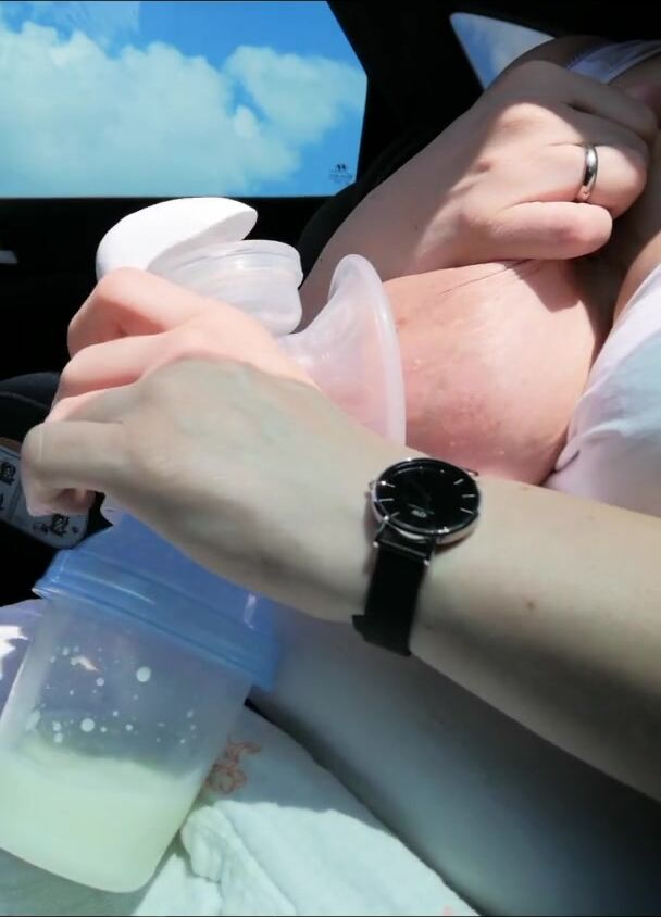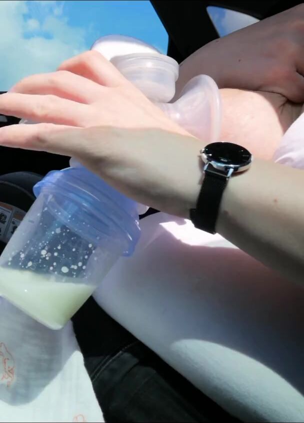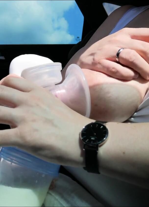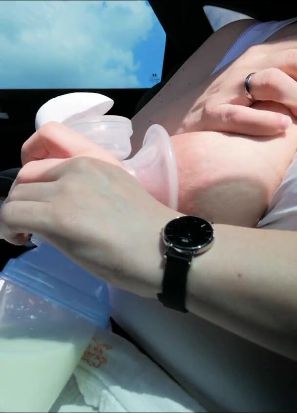 PUMPING MY BIG MILK TITS EMPTY IN THE CAR