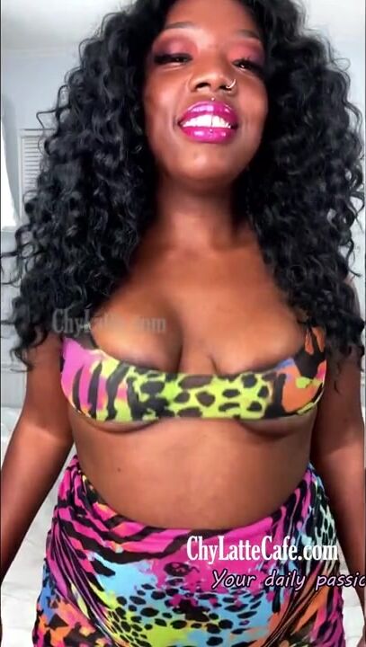 . Big Titty Ebony MILF Chy Latte Bounces Her DD Mommy Milkers in Slow Mo Titty Drop Wearing my pink, blue, orange and green animal print bikini cover-up, bouncing up and down until my huge mommy milkers