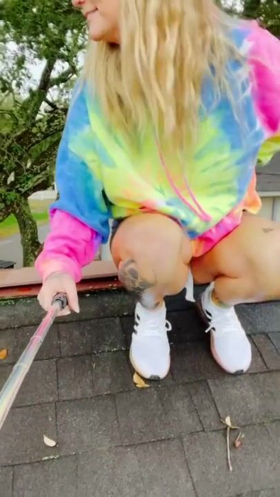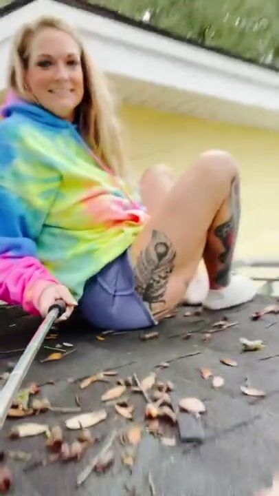 MILF CLIMBS ON THE ROOF FOR NEIGHBORS TO SEE HER PEE