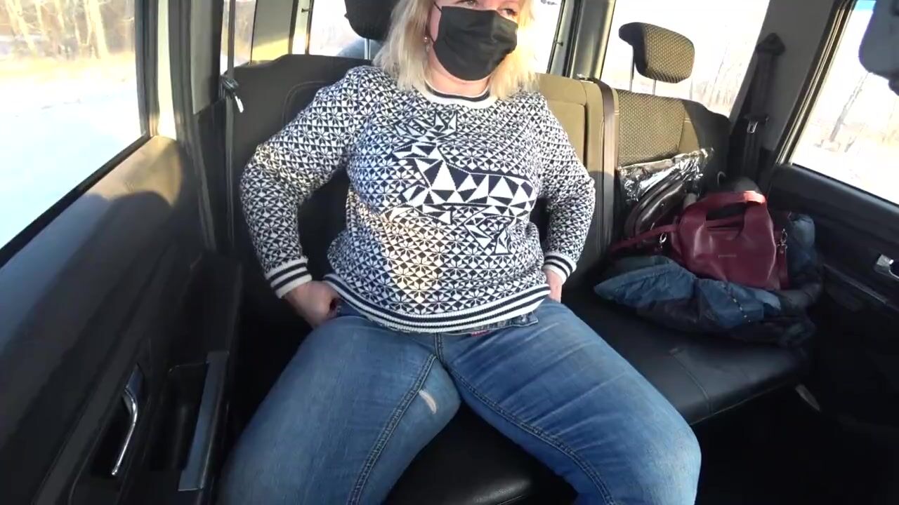 A CHUBBY MILF RIDES IN A CAR AND SHOWS BIG BOOBS, HAIRY PUSSY ON A WEBCAM.