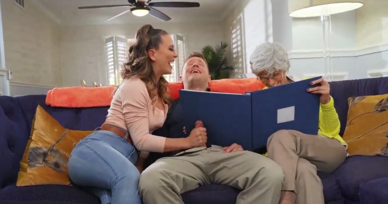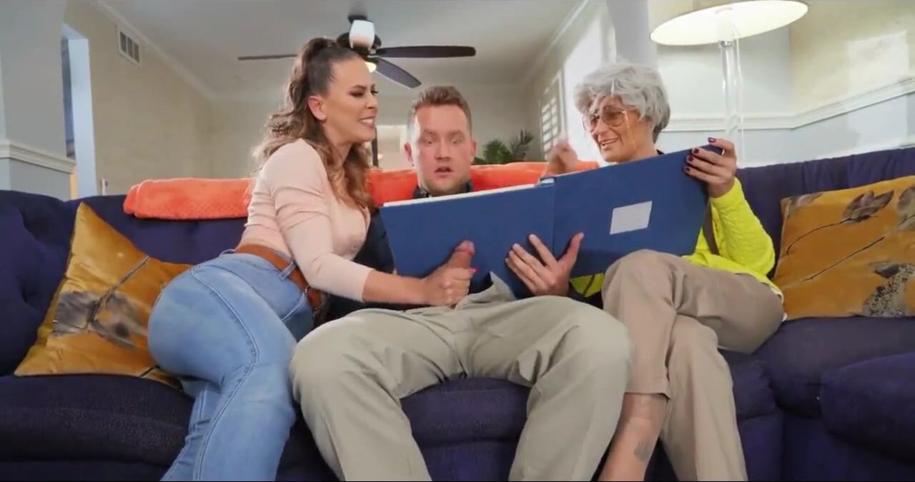 . A sneaky Handjob From Cherie Deville and Fucking While Grandmother Is There- Horny MILF Gets Fucked Next To Grandma