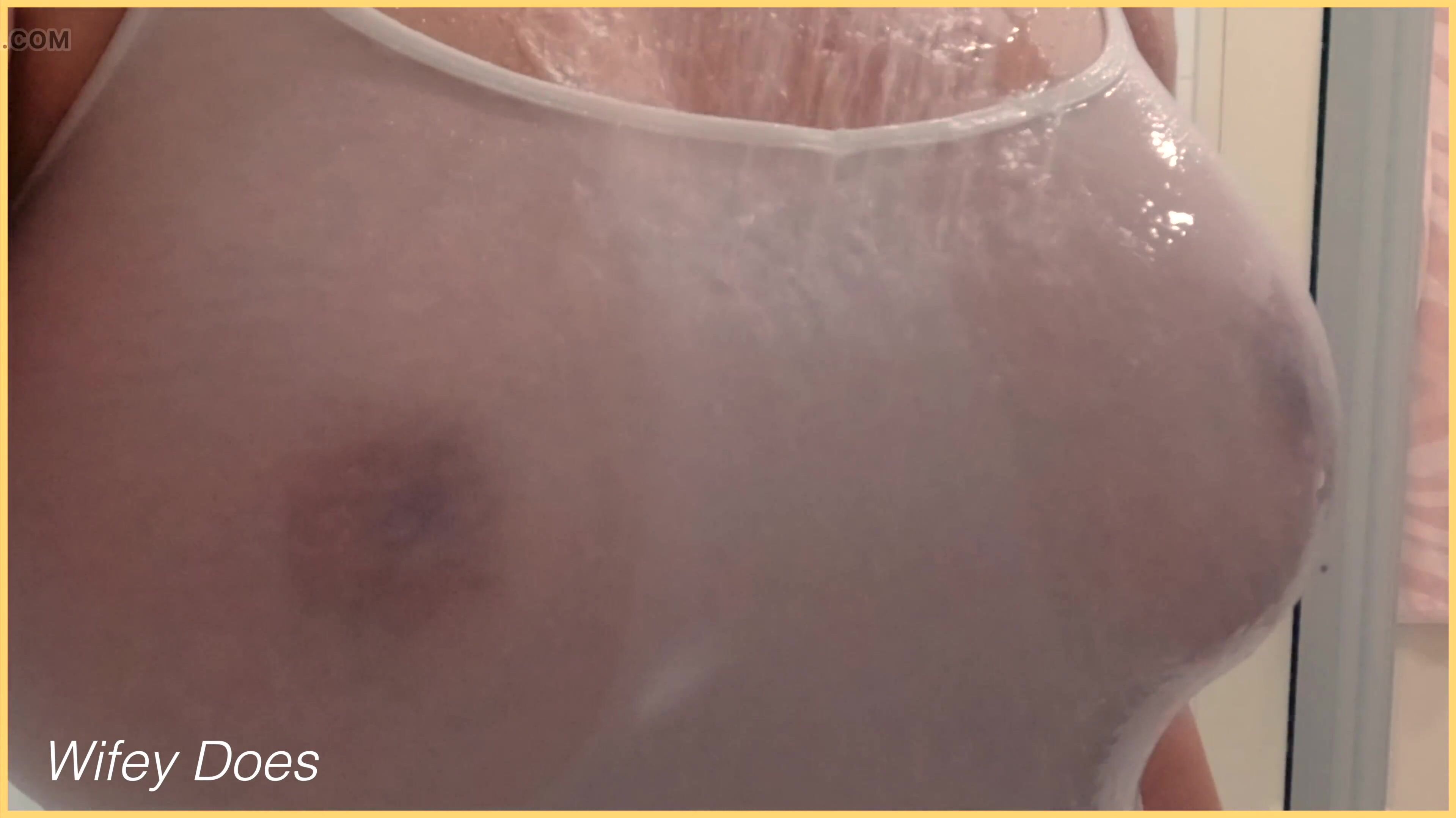 . Wifey has amazing tits for wet shirt braless. Hot MILF is braless and getting her perfect tits wet in the shower. Her amazing tits show braless for perfect enjoyment. Hot WIFE with braless wet shirt tits.