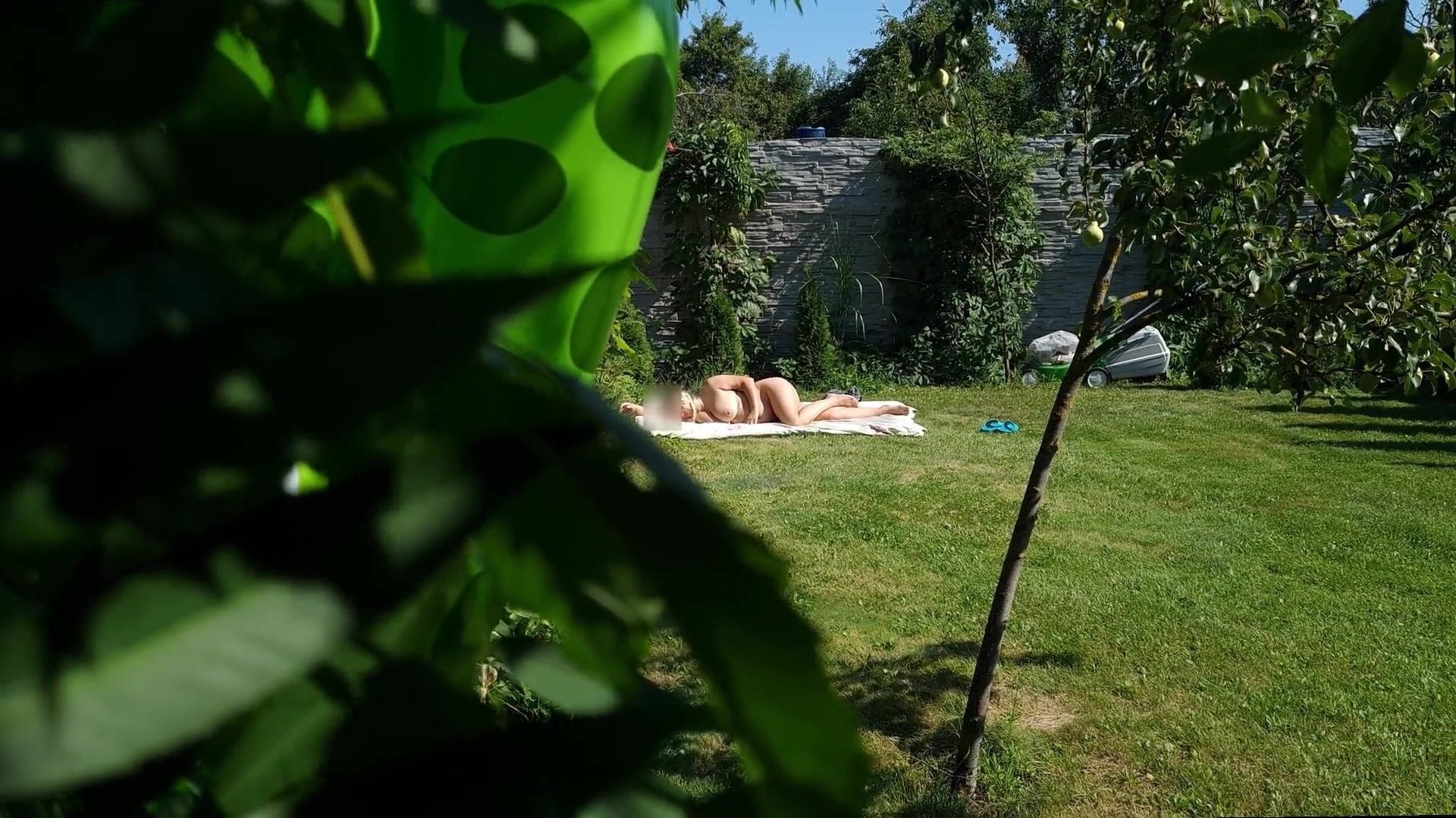 I SPY ON MY STEPMOTHER, SHE IS SUNBATHING NAKED IN THE YARD