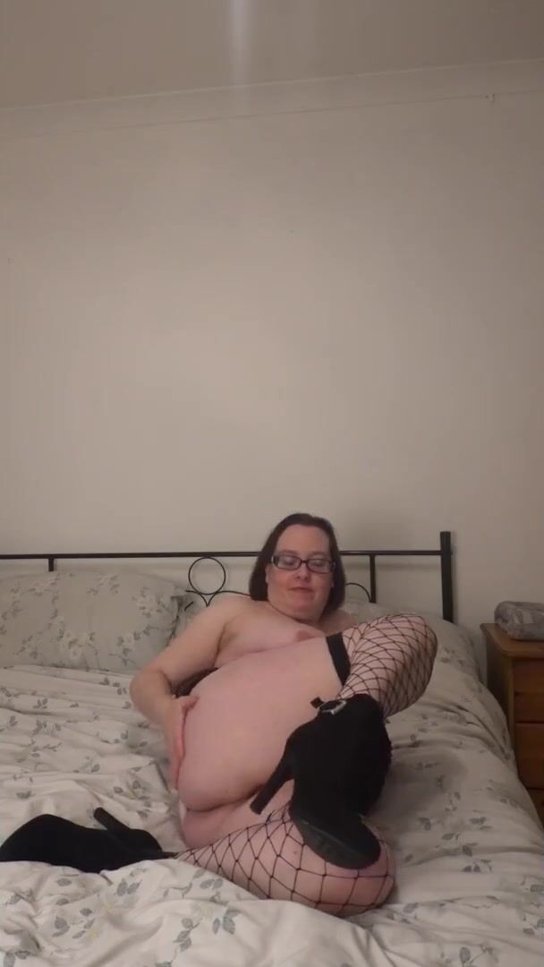 PLAYING WITH SHAVEN PUSSY IN STOCKINGS, HOOTS AND BASQUE