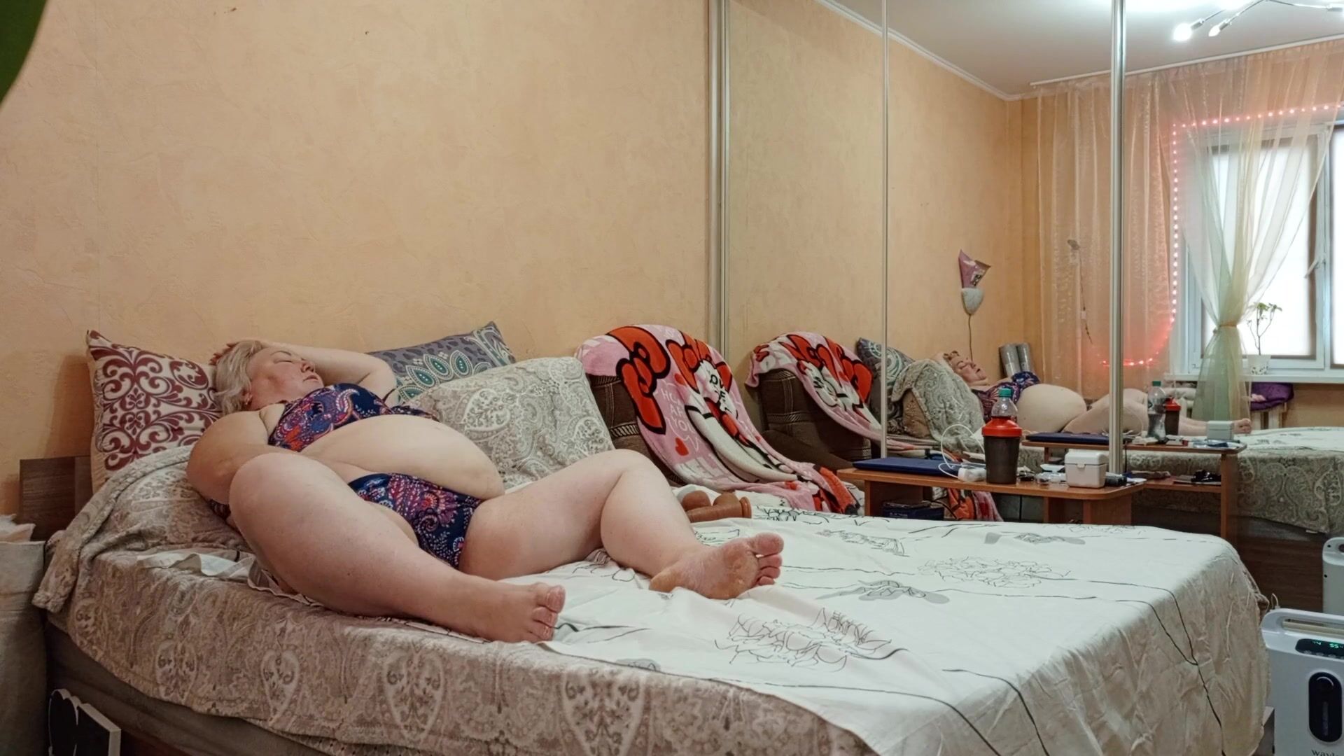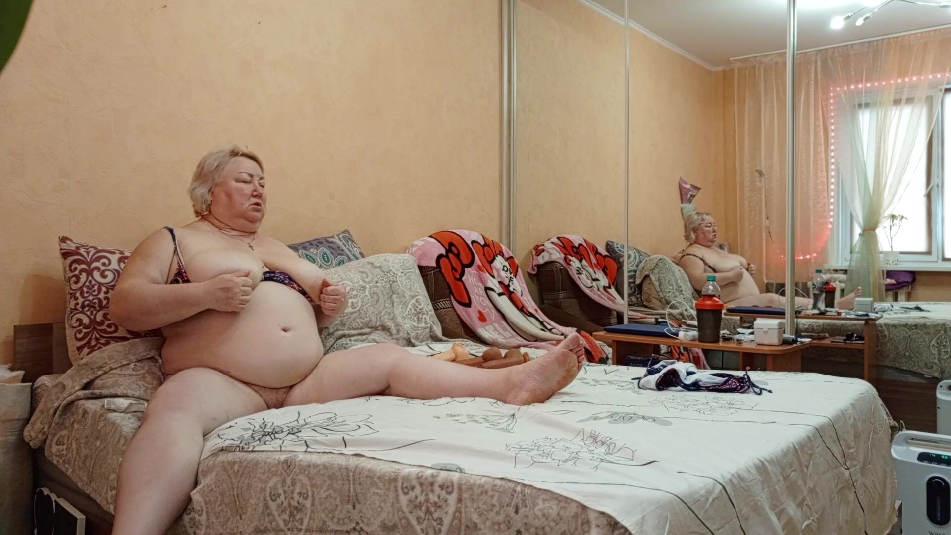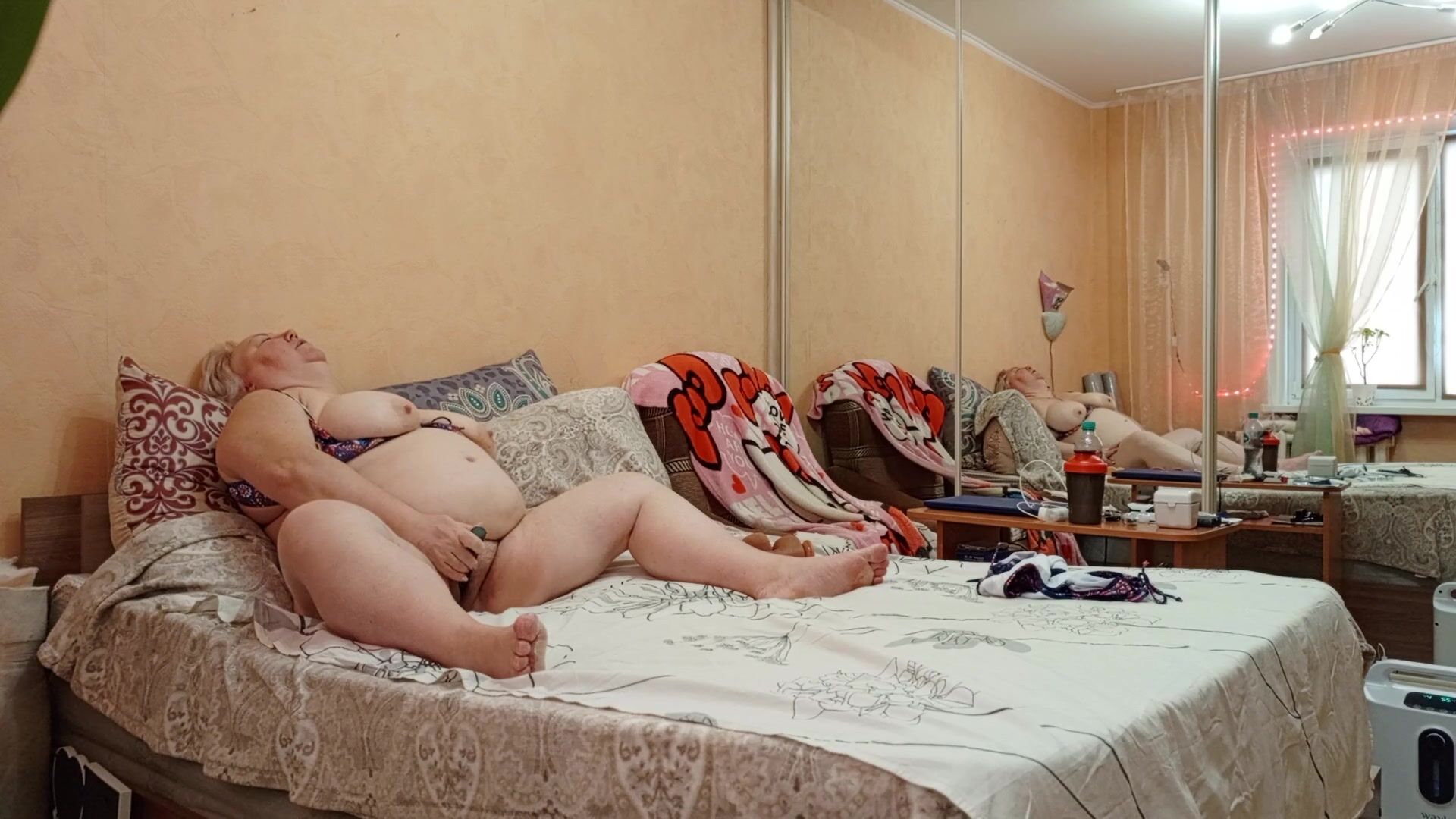 MOTHER-IN-LAW MASTURBATES HER MEATY PUSSY IN THE EVENINGS AND RUBS HER BIG TITS