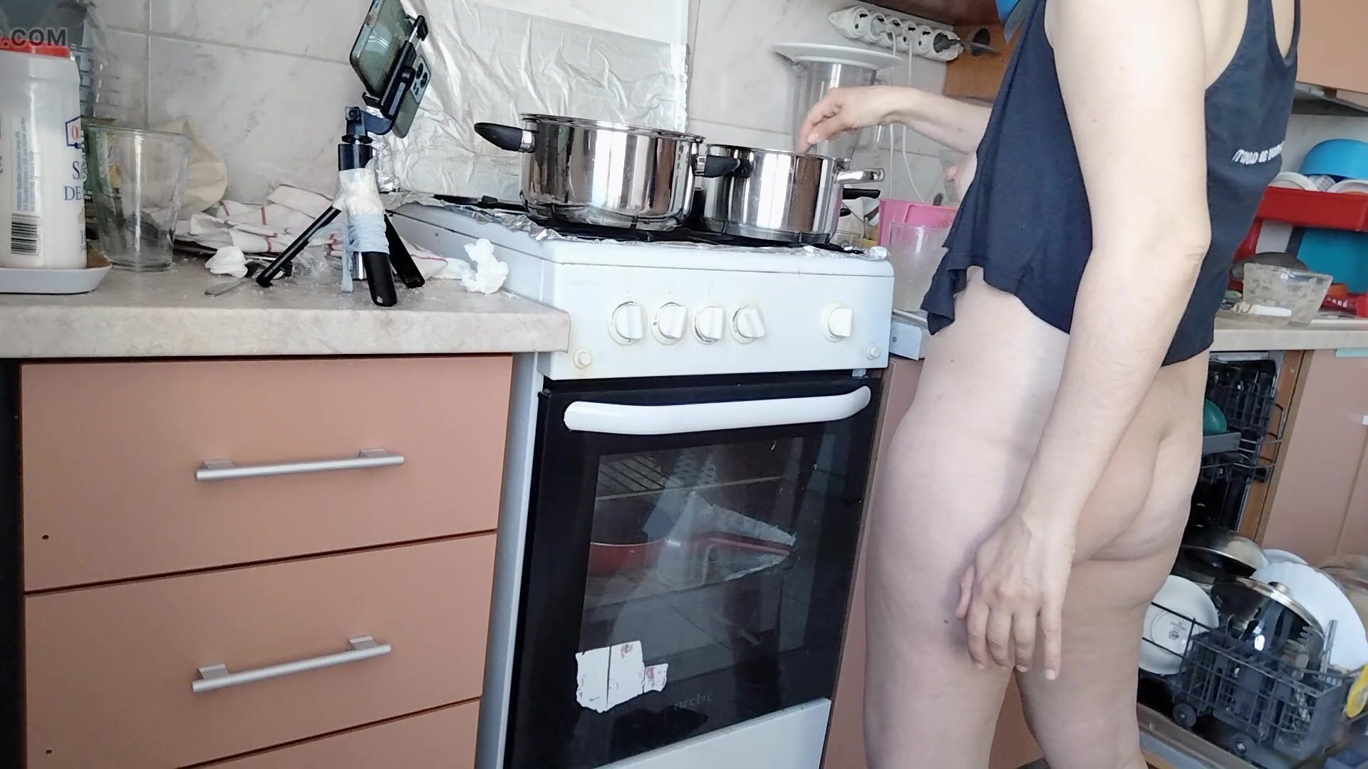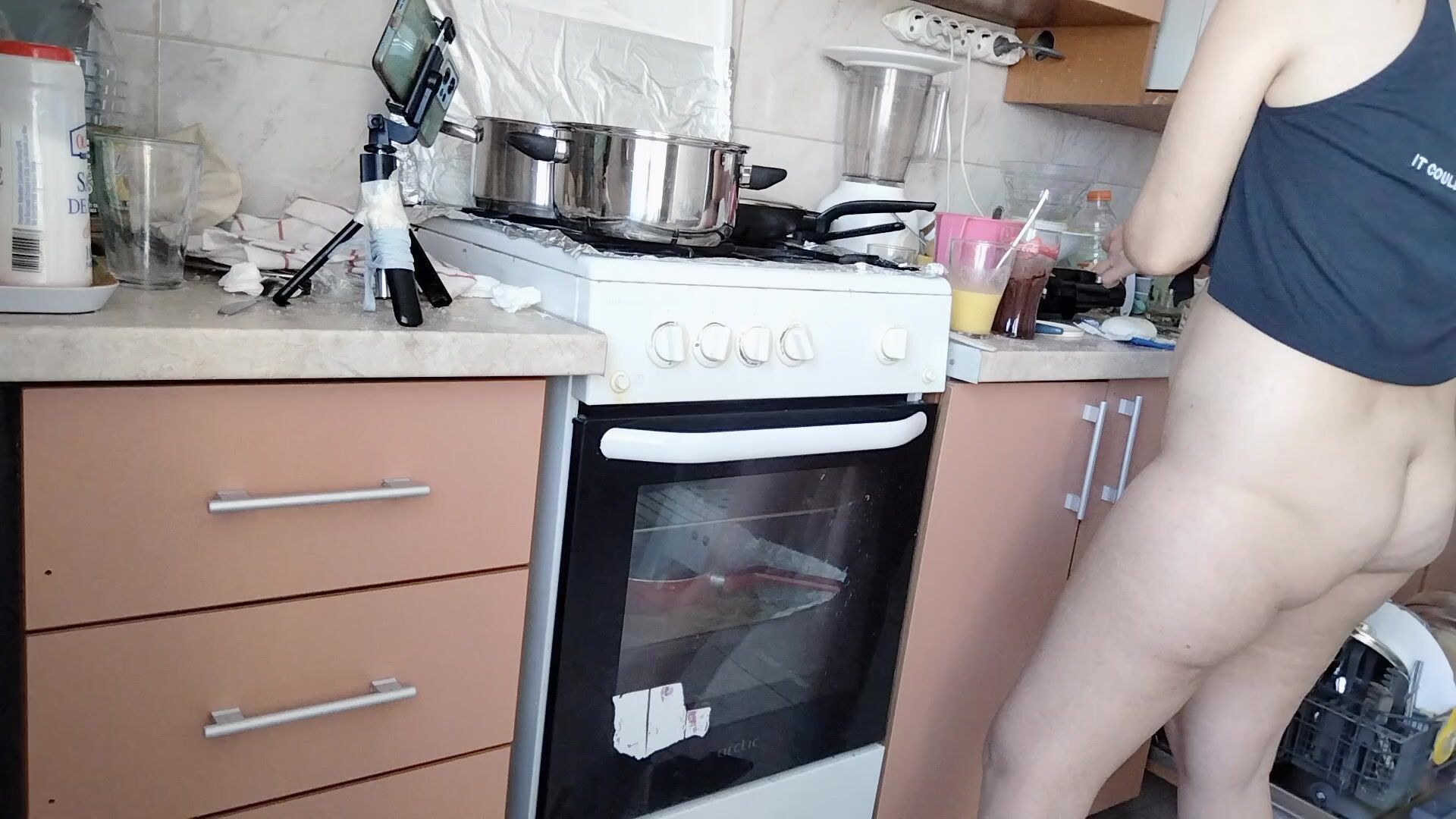naked in the kitchen