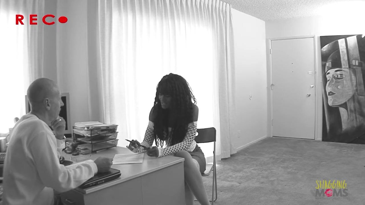 . This beautiful ebony chick wants to take shortcuts in life by sucking off the movie director in his office. She gets on her knees to deep throat his massive cock. She loves getting a mouthful of cum.