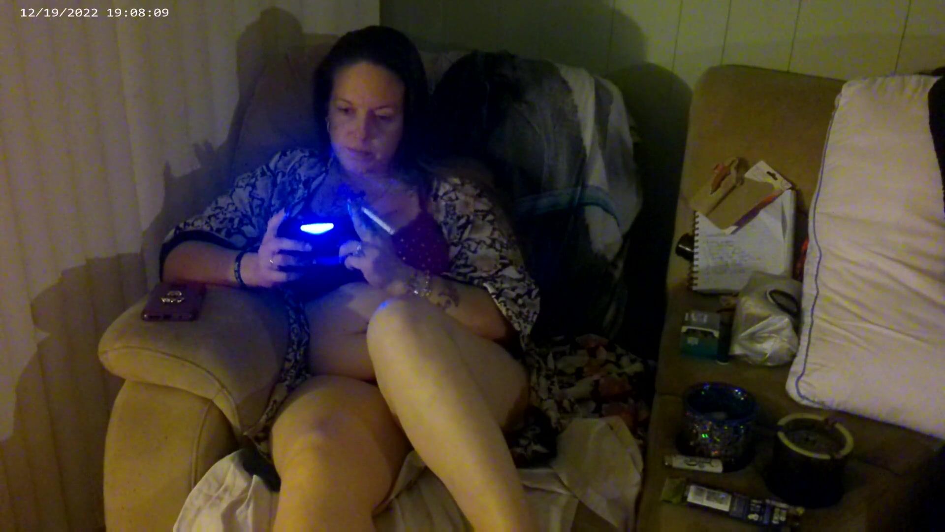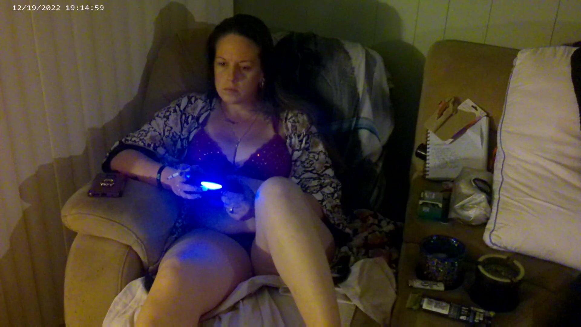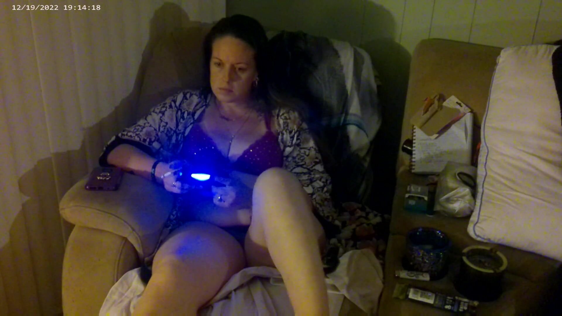 BUSTY LONG HAIR GAMER GIRL IN BRA AND PANTIES PLAYING SMOKING CIGARETTES PART 2