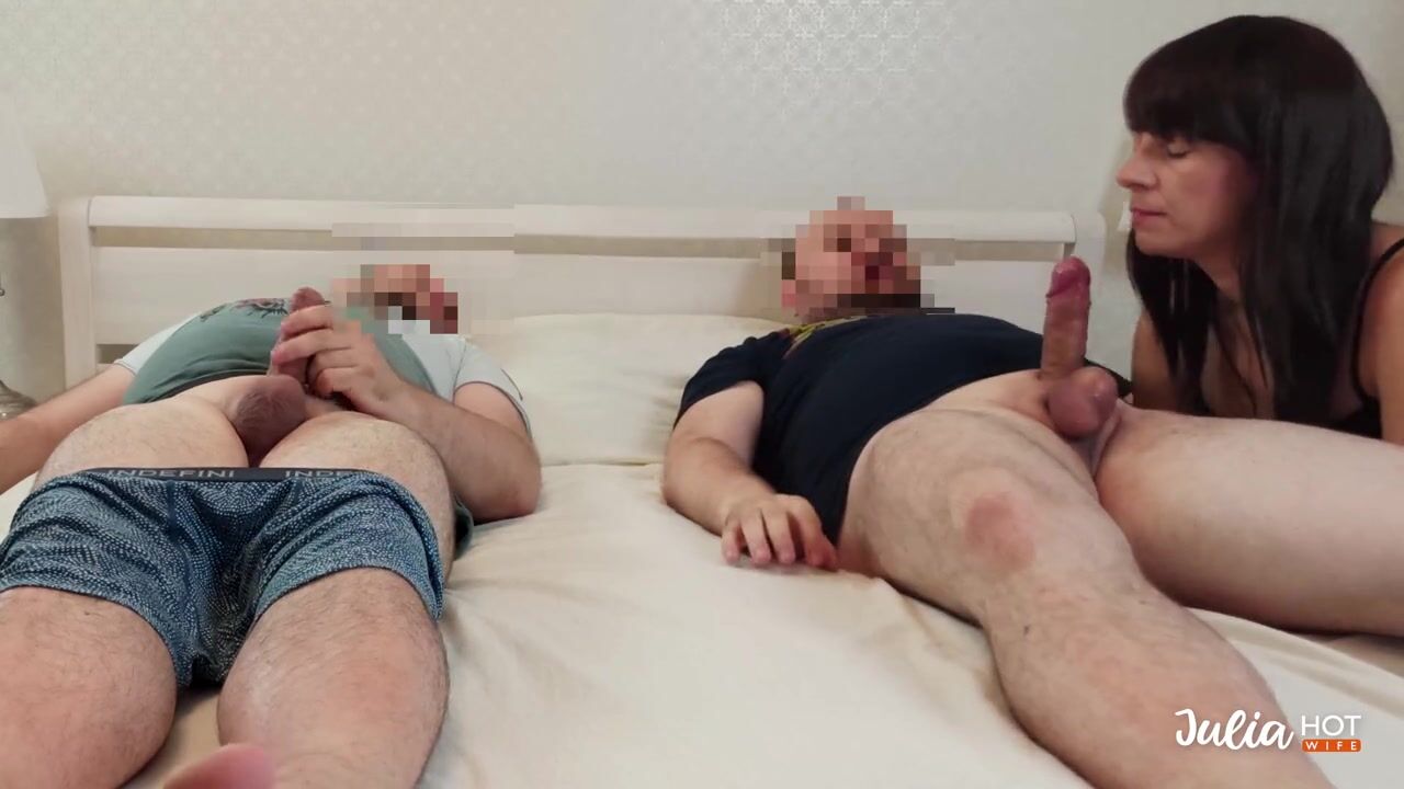 SHARED HIS WIFE WITH A FRIEND. SEXY MILF FUCKS WITH HER LOVER WITH HER HUSBAND. CUCKOLD.
