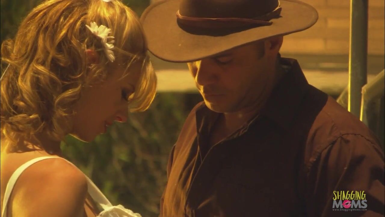 . Naughty blonde with big boobs meets the strong horny cowboy in the woods. She started seducing him and using the opportunity to feel his big hard dick in inside her wet pussy.