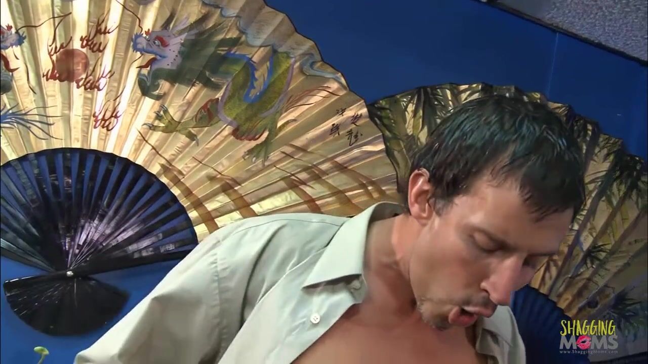 . After the shift, gorgeous blonde milf with big tits helps her boss finish his work. She uses the opportunity to feel his big hard dick inside of her wet pussy and big ass.